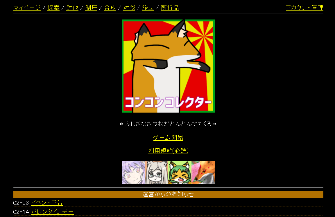 2021年02月26日 *ふしぎなきつねがどんどんでてくる* どうも、私です。 ブラウザが悲鳴を上げてそうなゲームばかりな、そんな時代。 そんな時代だからこそ、 ブラウザへの負担が軽そうなゲームのことでも。 コンコンコレクター。略してコンコレ。 何だかんだで 7~8年ぐらい続いてる、 キツネ好きに愛されたゲームですね。 なんかもうトップページの時点で、 なんだあれ……感がすごいですが。 内容的には昔よくあった、 ブラウザで遊ぶタイプのゲーム。 スマホ表示にも対応してます。 時間で回復するポイントを消費して、 様々なポイントを集めて……。 ガチャして狐魂を手に入れたり、 好きなキャラのステータスを際限なく強化して愛でるゲーム。 ぶっちゃけ、ゲーム性はないに等しいです。 数字を積み重ねてニヤニヤできる人向け。 FFBとかにハマってた世代とかね。 あの世代なら、すんなり受け入れられそう。続きを読む