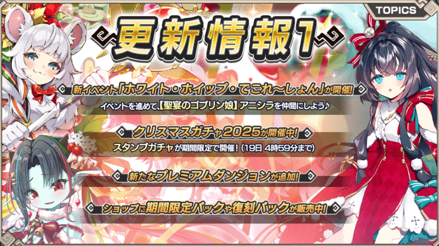 2025年12月23日 モン娘TD:聖宴アニシライベ後半戦おわり ※「ホワイト・ホイップ・でこれ~しょん」のネタバレがあります。後半戦。今回の愚痴:なしどうも、私です。こちらモンスター娘TD。モン娘TDの記事は、ギリギリ来週も出すことになりそうかな?続きを読む
