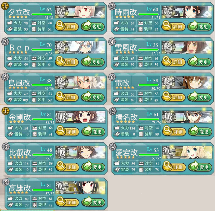 駆逐艦達がほぼ常時キラキラ付きでしたが