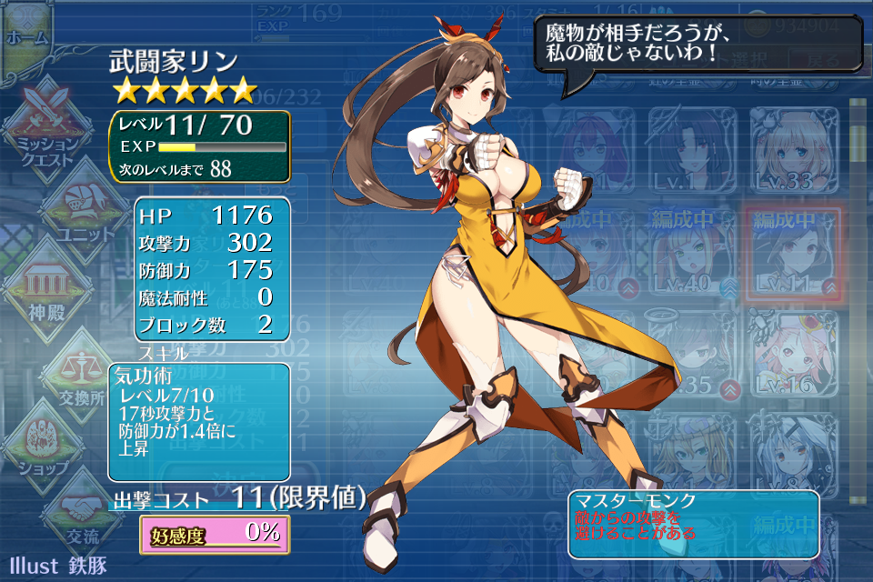 リンはコスト下限、スキルLv7でフィニッシュです。