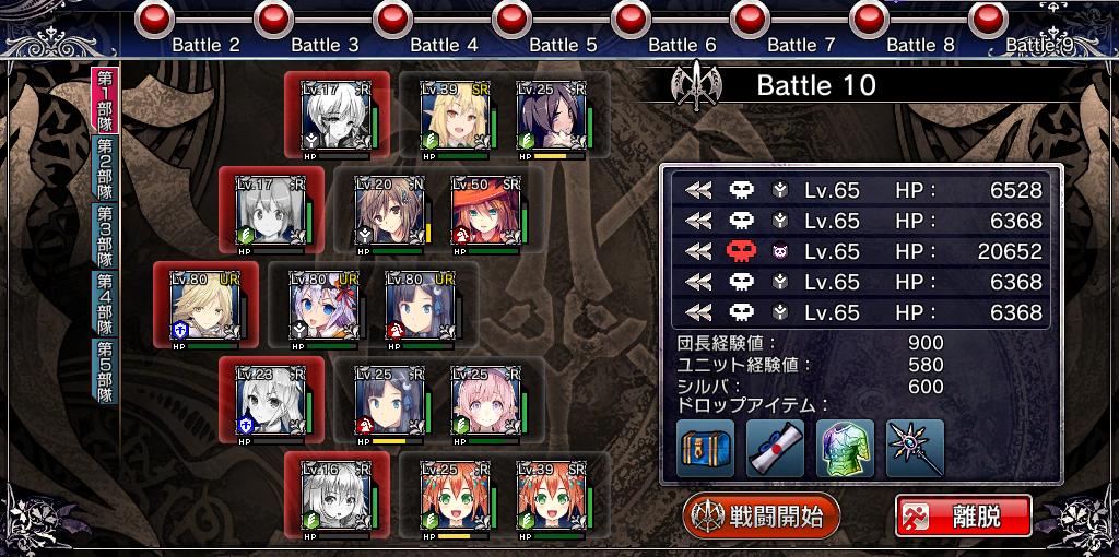残った中央列の主力組でゆっくりクリアしていき、経験値を稼ぐ。