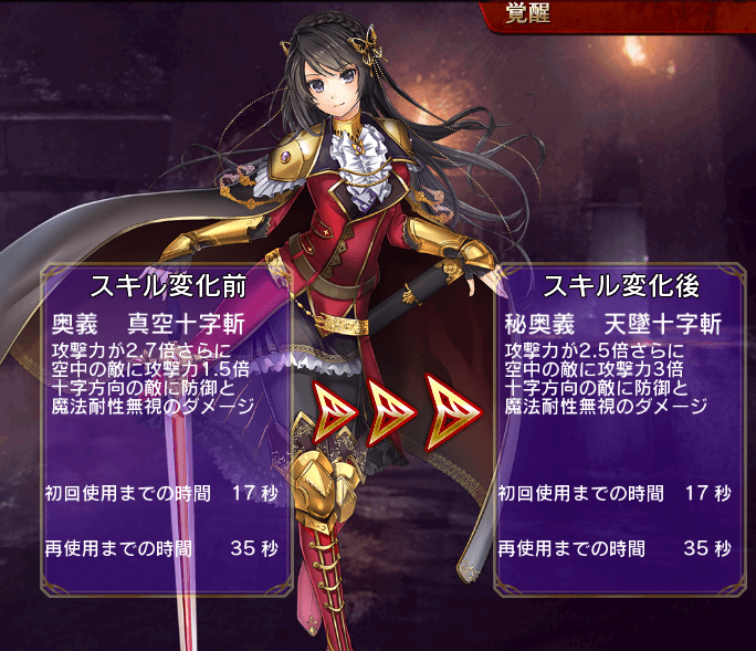 サンドラのスキル覚醒は、秘奥義 天墜十字斬。