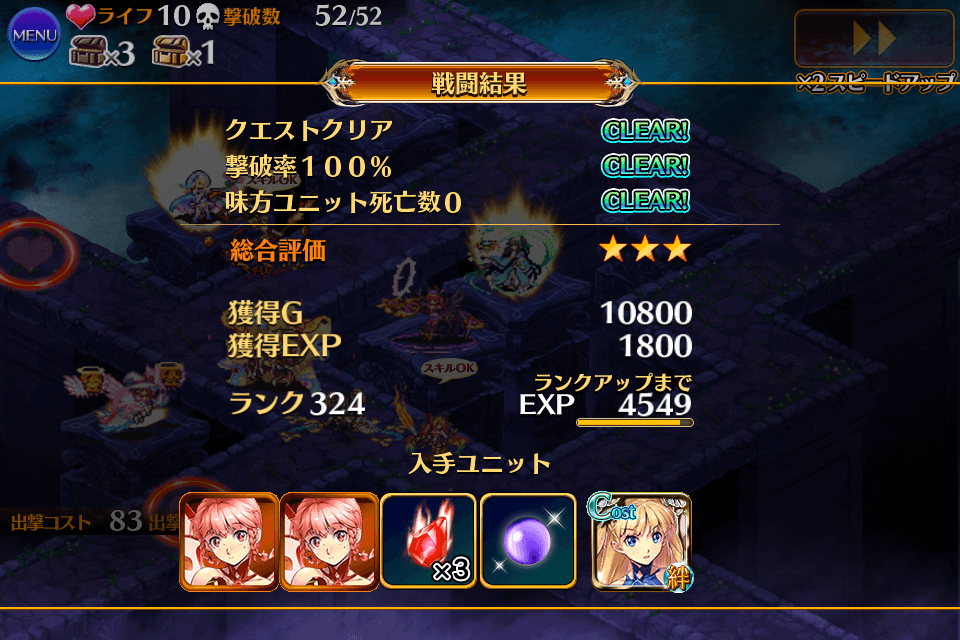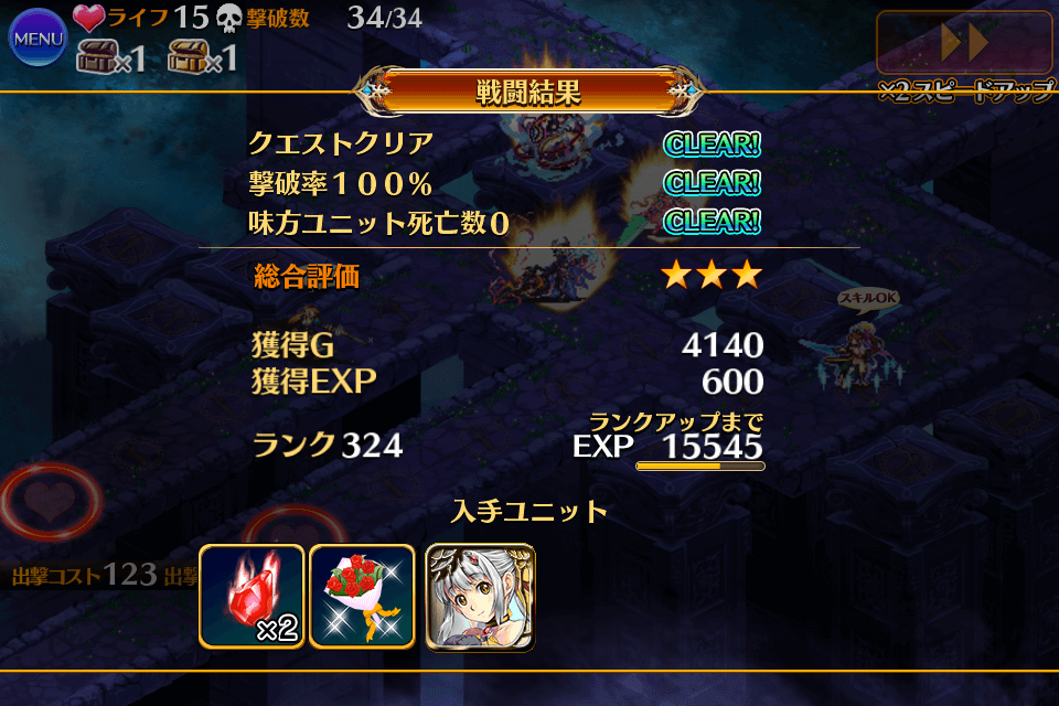 2回目の挑戦で★3クリア。