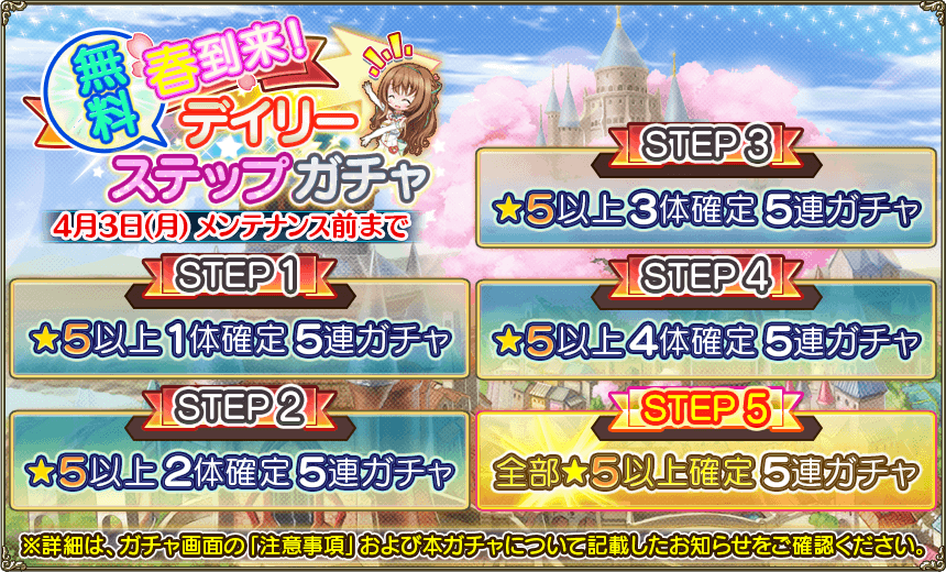 むしろこの無料ステップは、月初めガチャにすべき内容だと思うのです。