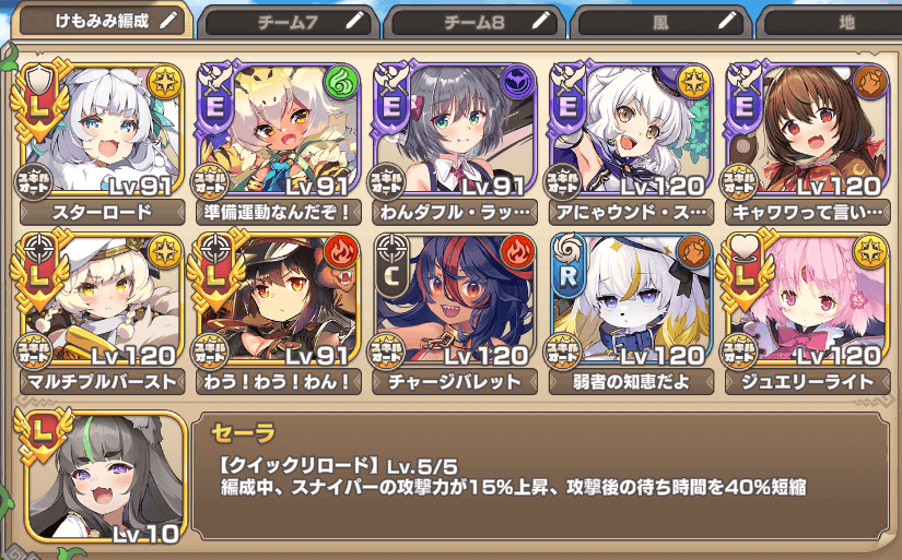 犬(銃)の多いケモミミ編成と相性がいいので、使ってみよう。