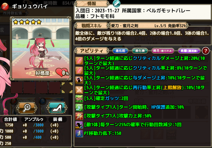 一応性能は1ターン目とはいえ他の子にクリ100%撒けるのは唯一だったかな..位ですかね。