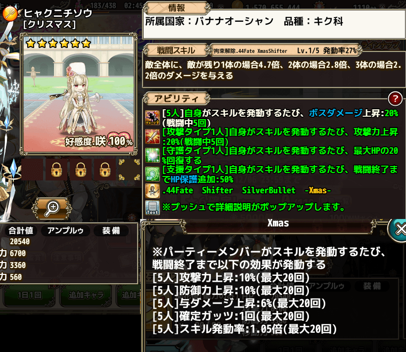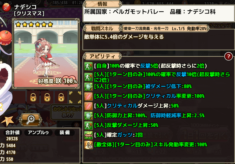 聖夜ヒャクニチソウは最終的なバフ量が凄いのもありますがそれ以上にガッツ20回が中々の壊れ性能だと感じます。