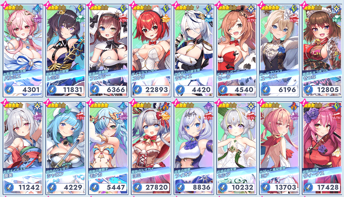 このゲームガチャ相性いいのでキャラはコンプ96体。だが、育成は殆どできず。