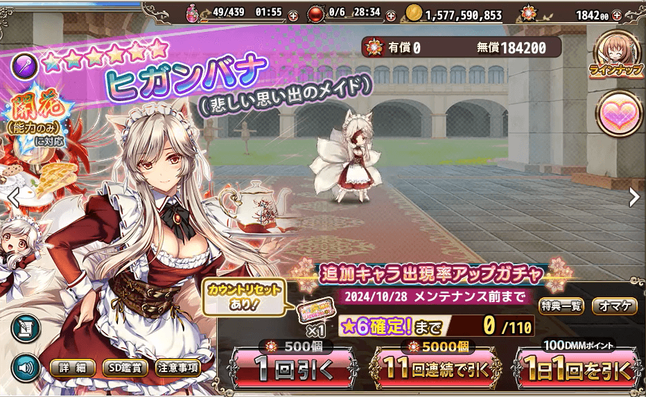 高難度()については夢想改虫で折れて前回の塔追加は未だに触って無くて城ラッシュの没敵がまだいたのかと思いたい所。あと限定、この前まで有償で古代、世界花ガチャ出してましたけど石ガチャでの復刻しないのかいと思う。