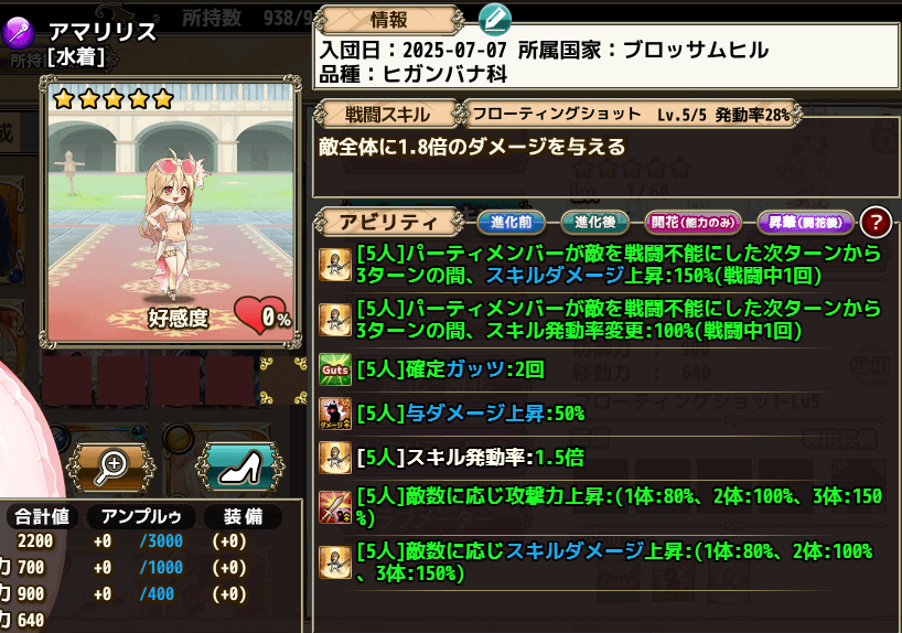 お花に話戻しますが有償ガチャ以外で表彰台に立てる機会が無いと思う様な状況ですが、まあ表彰台に立てる機会があるだけで表彰台にすら上がらない他タイトルから見たら充分優秀な部類だと思います。寧ろ低コストで売上を出せるタイトルとして重宝されるんじゃないかなとも。